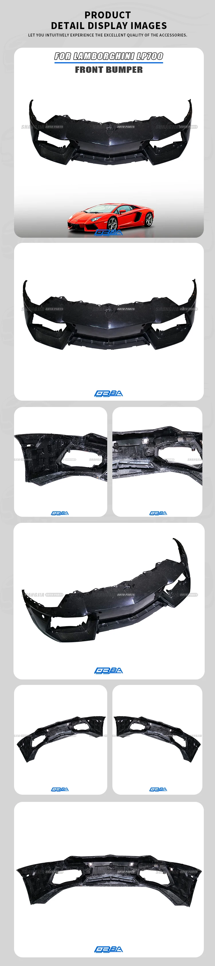 Suku Cadang Asli untuk Lamborghini LP700, Bumper Depan dari Bahan Plastik Hitam, Nomor OE 470807103E |