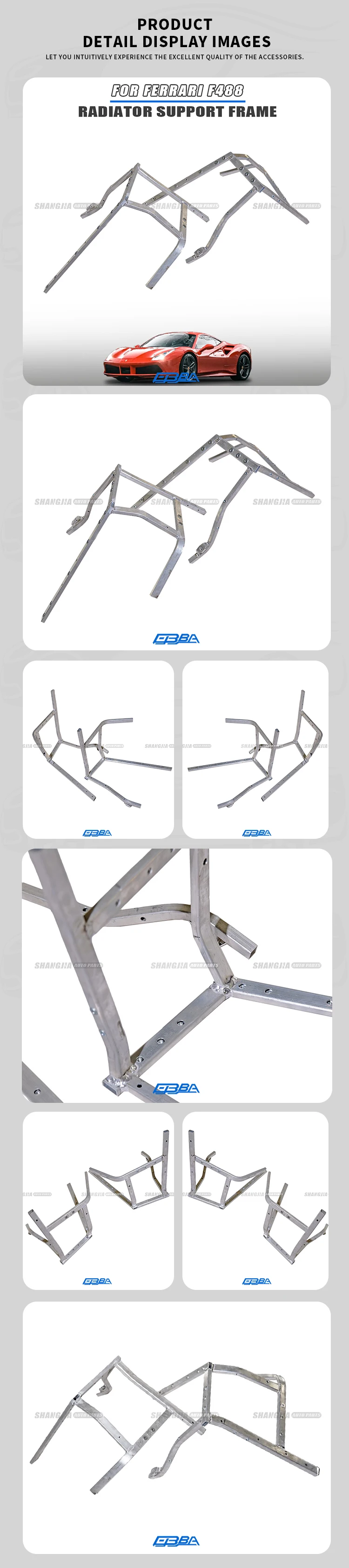 מסגרת רדיатор אלומיניום לתחום השוק החופשי, צד ימין, עבור פרארי 488 (2015–2019), אוזי 86107300 86107311.