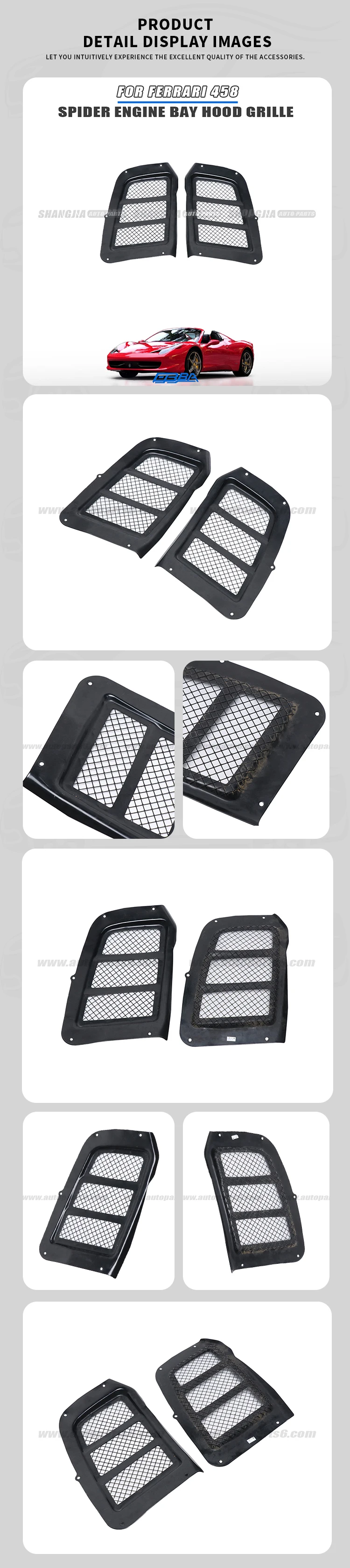 סינר אוורור מכסה מנוע צד שמאל וצד ימין ל פרארי 458 ספайдר, מספר חלק מקורי 83908700 ו-83908900 |