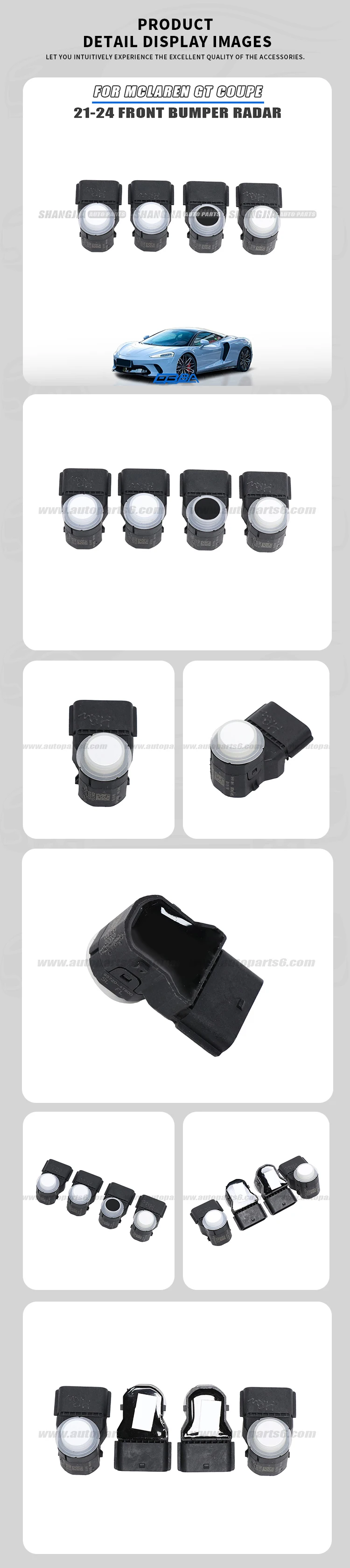 Automobilový radarový senzor – plastový predný nárazník s radarom pre McLaren GT Coupe 2021–2024, senzor pre parkovanie |