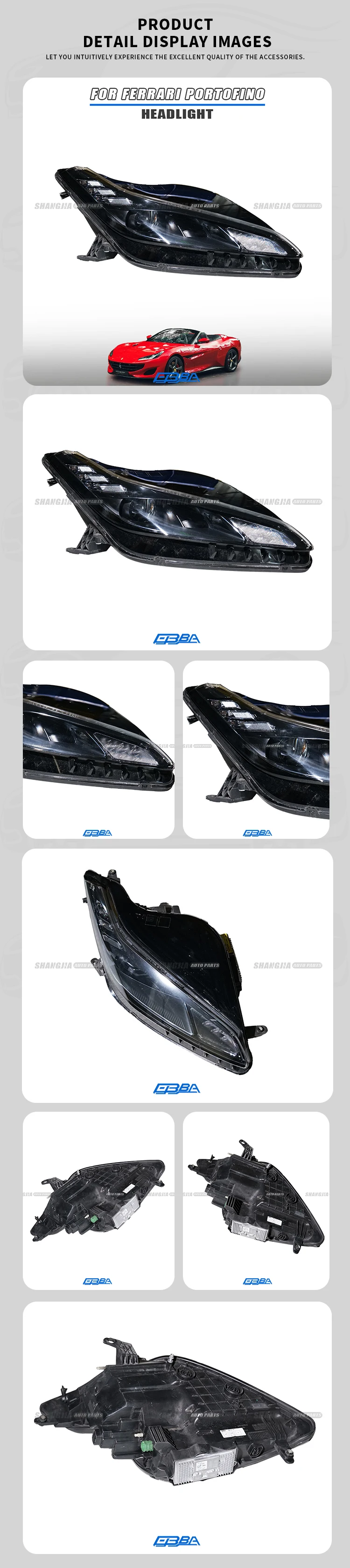 ชิ้นส่วนไฟหน้ารถยนต์คุณภาพสูงระดับไฮเอนด์ ทำจากวัสดุเดิมของผู้ผลิต ชนิดถอดออกมาจากยานพาหนะจริง สำหรับ Ferrari Portofino ปี 2018–2022 รุ่น OE 343513 |